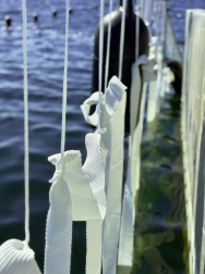 Her tidligere idag har Stenrevsgruppens to medlemmer Keld og Søren været igang ved Egmont Højskolens store badbro. De har i samarbejde med Havets Hus og Danmarks Naturfredningsforening, afd. Odder sat en muslingeline op mellem broens yderste pæle. Muslingelinen fungerer sådan at blåmuslinger kan gro på denne og over et par år vokse sig store. Blåmuslinge kommer ad sig selv ved æg, der svæver frit rundt i vandsøjlen. Det er jo ikke fordi at en enkelt blåmuslinge line kan rense det sydlige Kattegat. Men den kan være et godt eksempel i "mange bække små..." og den kan være et godt udgangspunkt i formidling af havets tilstand og, hvordan havet påvirkes positivt og negativt.