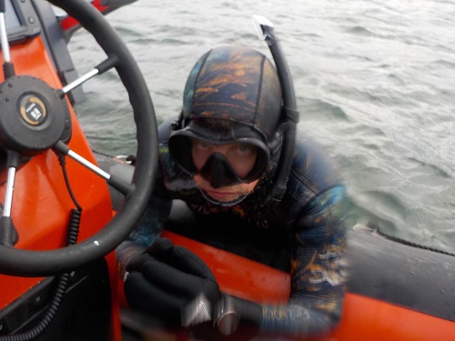 I denne uge har vi haft tre dykkere ude at se på vores stenrevsområder. De laver en marin arkæologisk forundersøgelse. Det er en nødvendighed, for at vi kan få lov til at lægge sten ud på de pågældende steder. Dykkerne kommer fra en afdeling på Moesgård Museum. Vi er spændte på deres tilbagemelding.